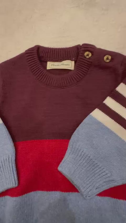 Design: Color block stripes with shoulder button closure