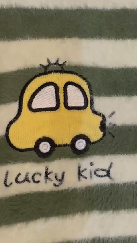 • Fun embroidered car design with “Lucky Kid” text