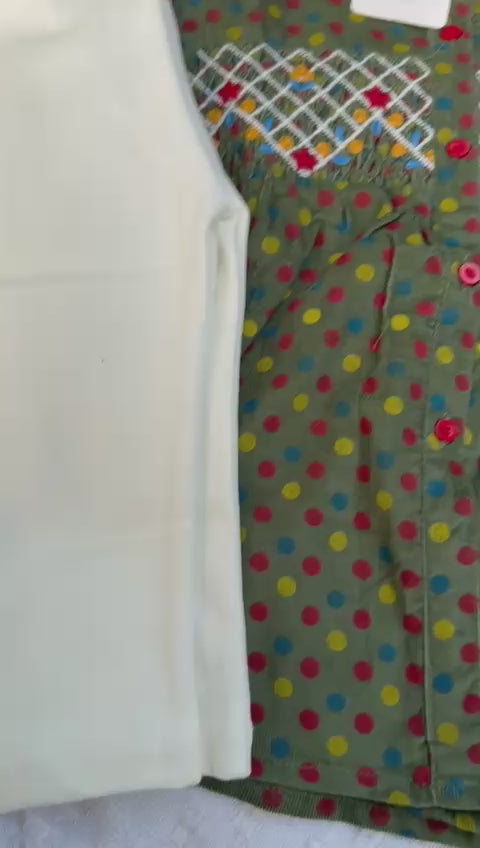 Set Includes: 1 Embroidered Polka Dot Top + 1 Cream Trouser